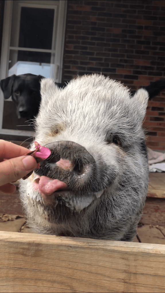 It’s here on our small plot of land that we grow all sorts of veg, herbs, fruit, nuts and flowers. We are in good company with our sheep, pigs, ducks, dogs, cats, bunnies, and wildlife galore. Most of our residents have been rescued from neglectful homes and have come here to retire. We do, however, fully support sustainable farming practises and will be making space this summer for chickens to harvest for meat.
